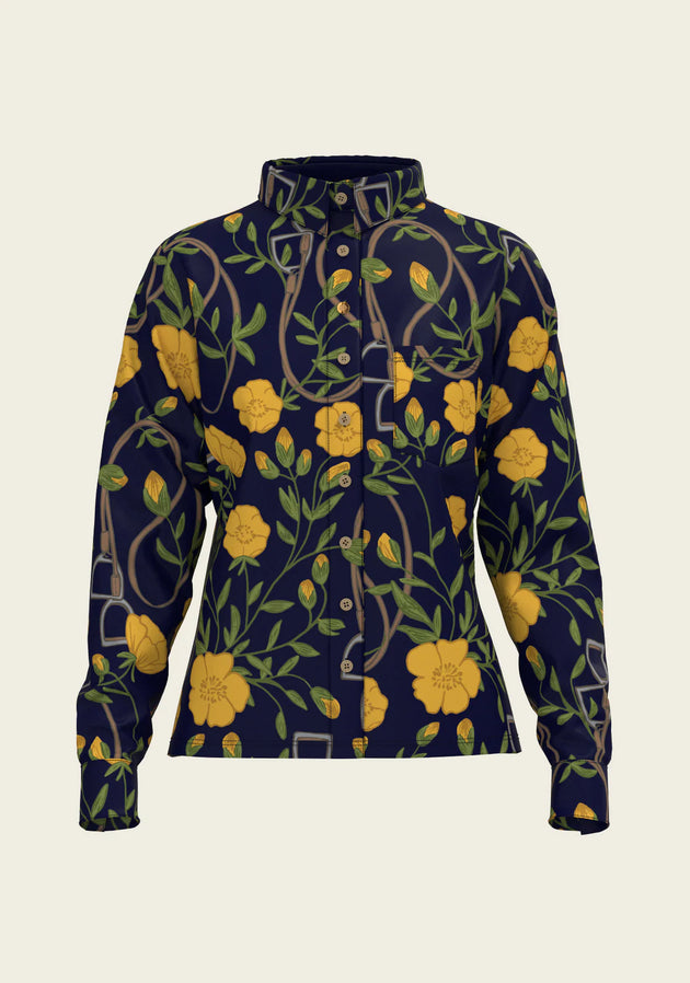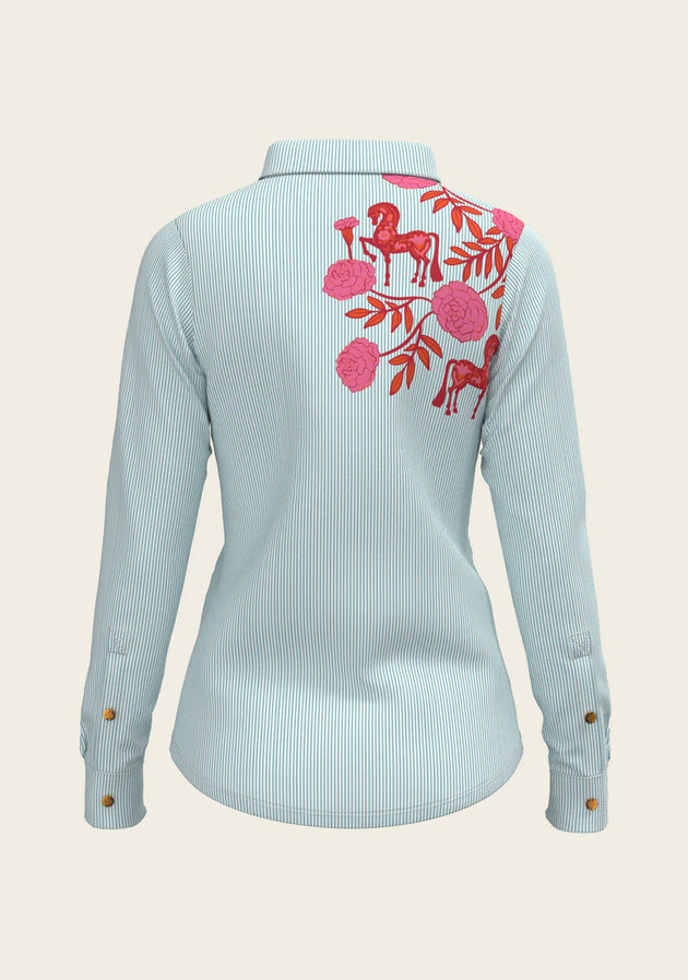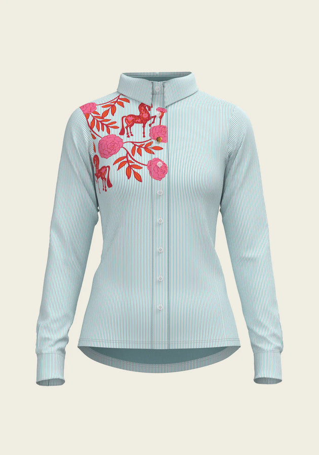 Peony in Blue Short Pleated | Long Sleeve Show Shirt