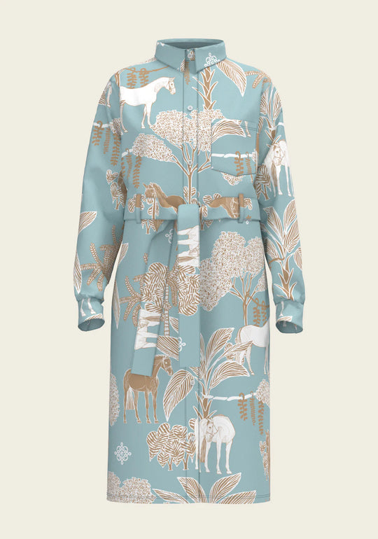 Island Horses on Sky Blue | Long Sleeve Shirt Dress
