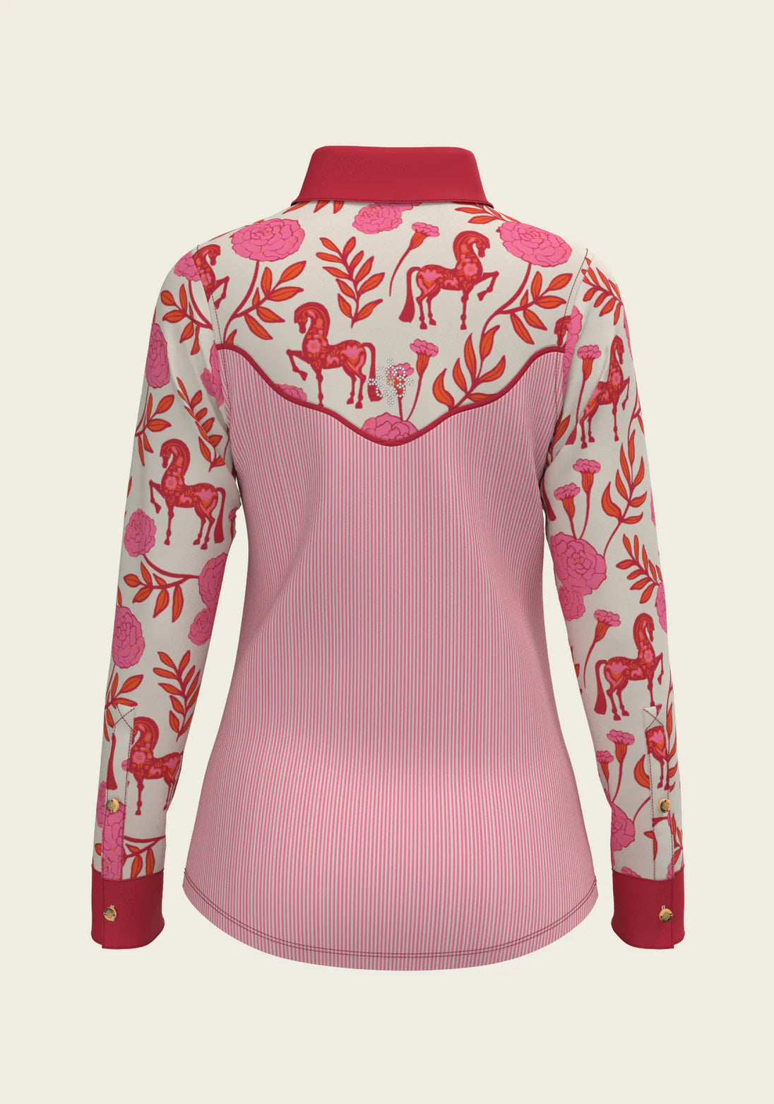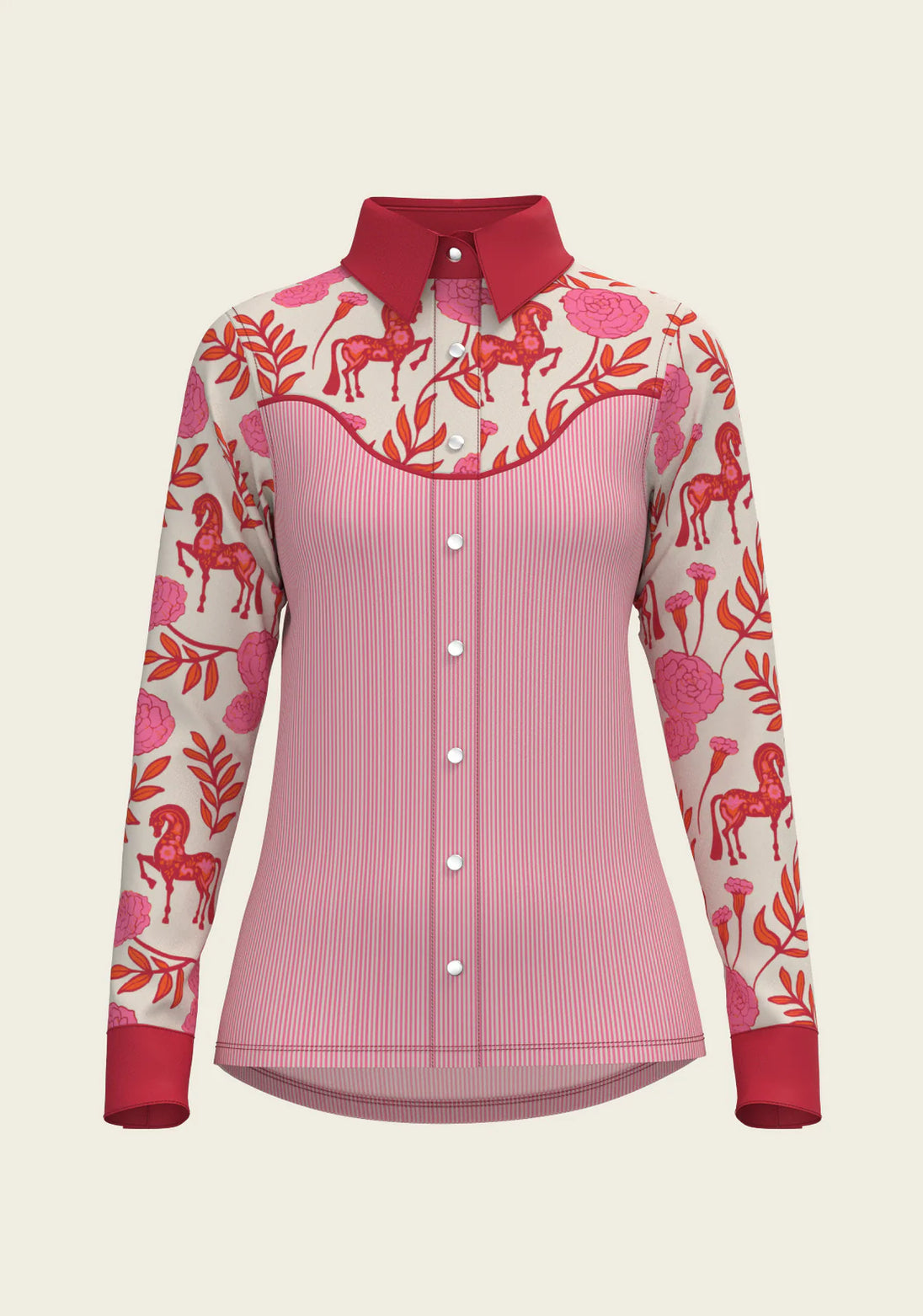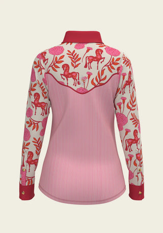 Western Peony in Pink with Stripes | Ladies Snap Shirt
