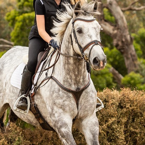 Our best-selling breastplate. The ‘Anka’ breastplate is shaped comfortably over the horse’s shoulder, allowing freedom of movement. The anatomic design means there are no shoulder restrictions.